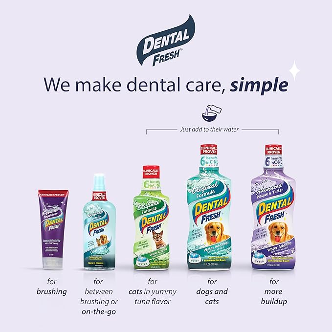 Dental Fresh Advanced Plaque and Tartar Water Additive, 17oz – Dog Teeth Cleaning Formula to Freshen Breath and Improve Cat & Dog Dental Care