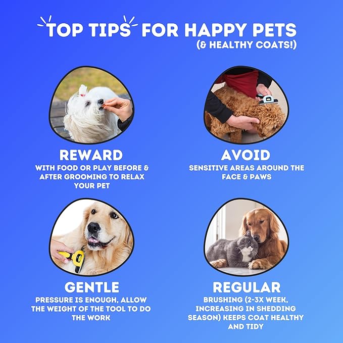 - MULTIPLE BENEFITS: Our dog and cat brush for shedding removes loose hairs and lightly thins the coat without causing discomfort. This improves the health and appearance of your pet's coat, relieves stress, stimulates blood circulation and helps you to keep your home fur-free too!