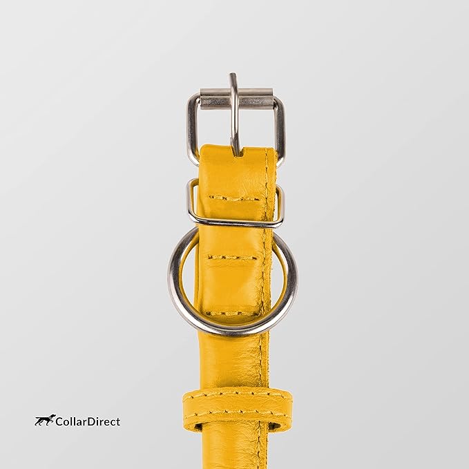 CollarDirect Rolled Leather Dog Collar, Soft Padded Round Puppy Collar, Handmade Genuine Leather Collar Dog Small Large Cat Collars 13 Colors (18-22 Inch, Yellow Textured)