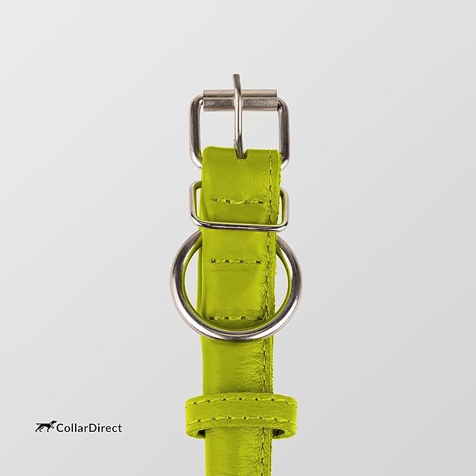CollarDirect Rolled Leather Dog Collar, Soft Padded Round Puppy Collar, Handmade Genuine Leather Collar Dog Small Large Cat Collars 13 Colors (13-16 Inch, Lime Green Textured)