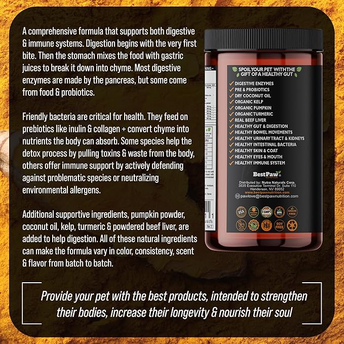 - TASTY & EASY TO SERVE - A digestive supplement tasty for picky fur babies. No more pill pockets or unhealthy chews and bites. The only powder gut and butt remedy with real beef liver. Simple to scoop, sprinkle over food, mix and serve! You'll wish you got your paws on it sooner!