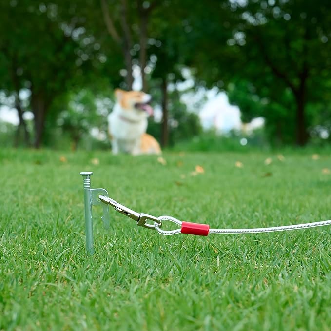 - Tie-out cable for medium- to large-size dogs up to 90 pounds