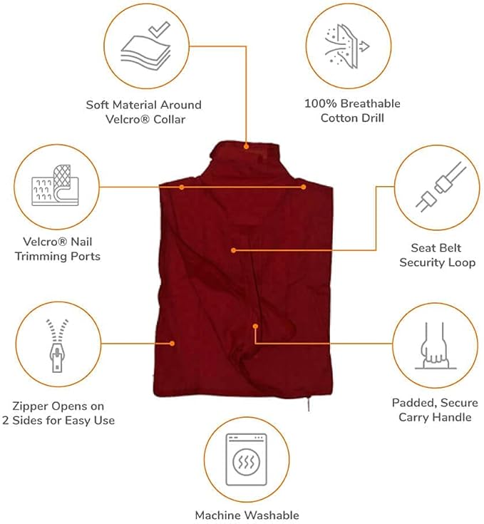 Cozy Comfort Carrier - Small Soft Red Cat Carrier and Cat Restraint Bag for Nail Trimming, Vet Visits, Medication Administration, Dental Care, and Travel