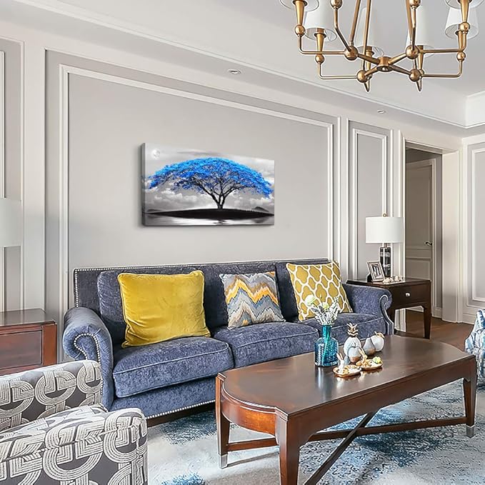 canvas wall art for living room bathroom Wall Decor Black and white landscape Blue tree moon painting to Hang Home Decorations for office bedroom kitchen Works canvas Prints pictures 24" x 48"inch