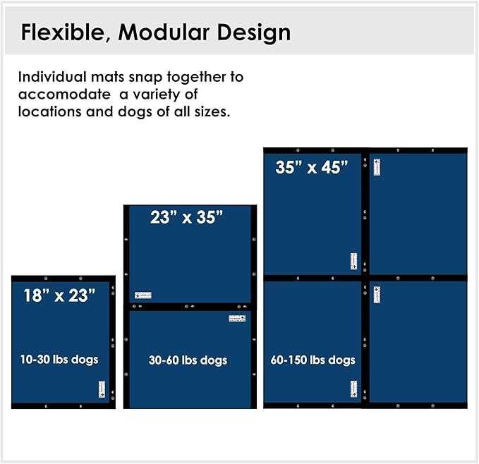 - ROBUST AND MODULAR Made with rip-stop materials, for use indoors or outdoors. Each mat has snaps on three sides to connect multiple mats for larger dogs. Mat cover is machine washable