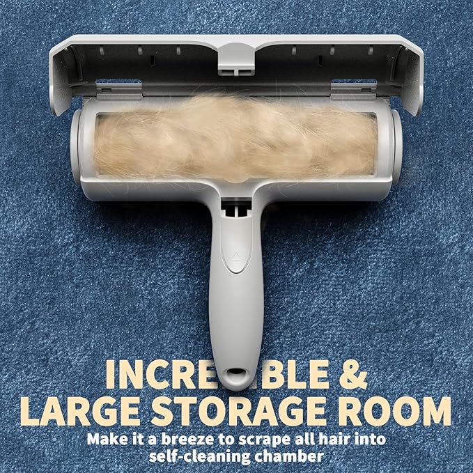 - REUSABLE & SELF-CLEANING DESIGN: Say goodbye to sticky sheets, batteries, and waste! Featuring a built-in Fur Collection Bin, simply roll back and forth to quickly pick up pet hair. Empty the bin and reuse β an eco-friendly, money-saving solution for pet owners.
