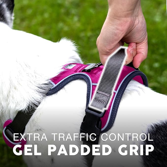 - BUILT TO KEEP YOUR DOG SAFE - Made from heavy duty Oxford and Military Grade Nylon materials, the harness features reflective strips, and a Gel handle for no pull dog harness medium sized dog has a pulling strength of up to 750 LBS! Enjoy the Front & Back leash attachments and soft padding to protect your dog's trachea.