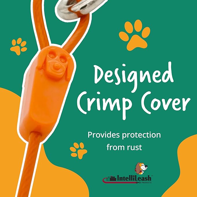 - Rust Protection: Features a plastic crimp cover with an adorable dog design, providing protection against rust and wear for a reliable tie-out experience.