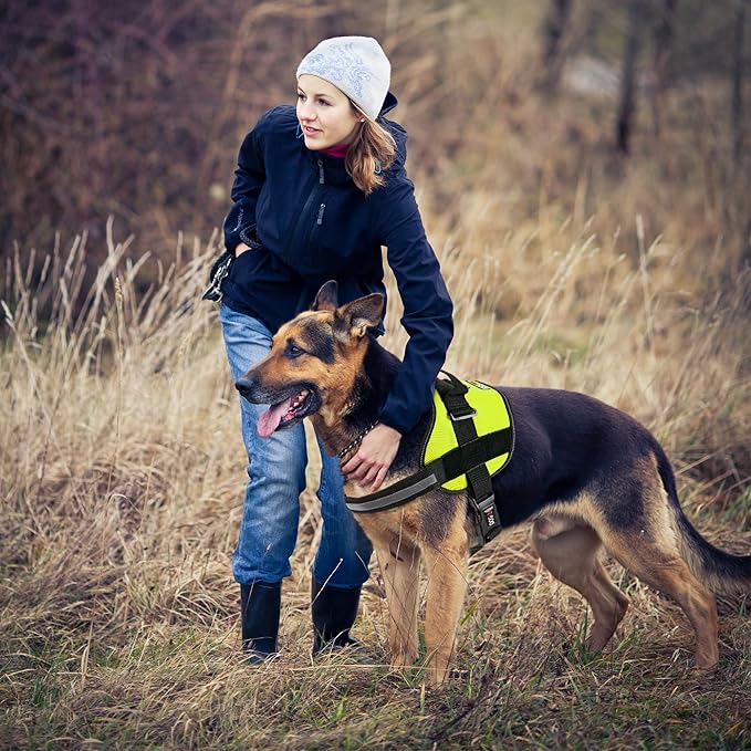 Dogline Dog Harness, Reflective No-Pull Adjustable Vest with Handle for Walking, Training, Breathable, No - Choke Harness for Small, Medium or Large Dogs Room for Patches Girth 33"-46" in Lime Green