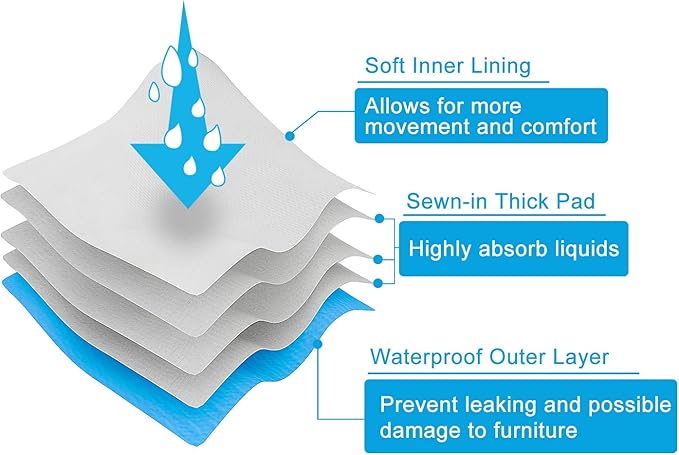 - Leak-proof with waterproof exterior shell to prevent leaking and possible damage to rugs, carpets, sofas and so on, and has easy fuzzy fastener closures for a snug fit. CuteBone male dog diapers with not only sewn-in super absorbent pads, but also a pocket where you can add extra pads for heavier wetting. Also with comfy fast-dry inner lining that your dog won’t fuss over.