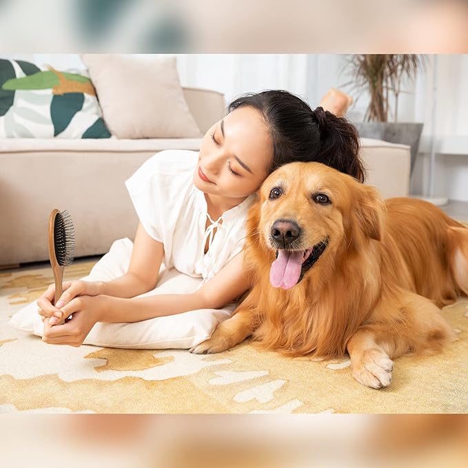 ClumsyPets Dog & Cat Ball Pin Slicker Grooming Brush with Bamboo Handle for Pets Massage Bath and Removes Mats Loose Fur Hairs