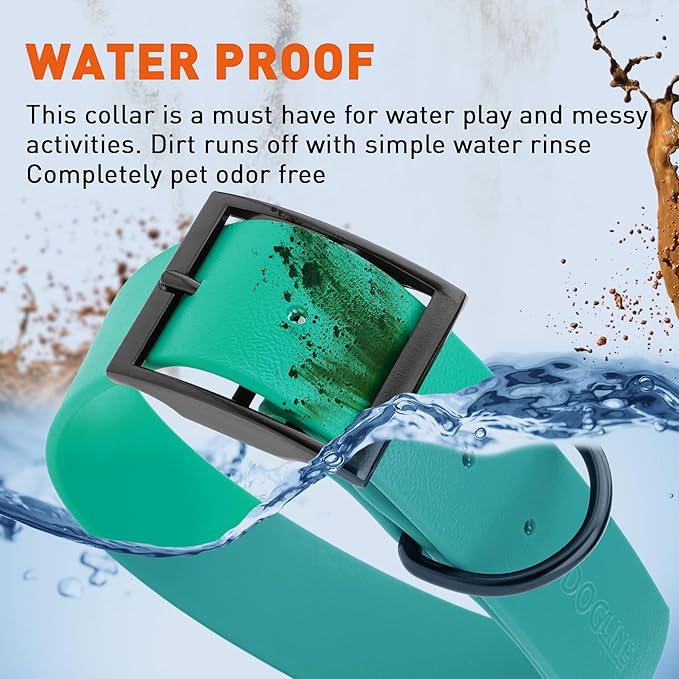 Dogline Biothane Waterproof Dog Collar Strong Coated Nylon Webbing with Black Hardware Odor- Proof for Easy Care Easy to Clean High Performance Fits Small Medium or Large Dogs, Teal