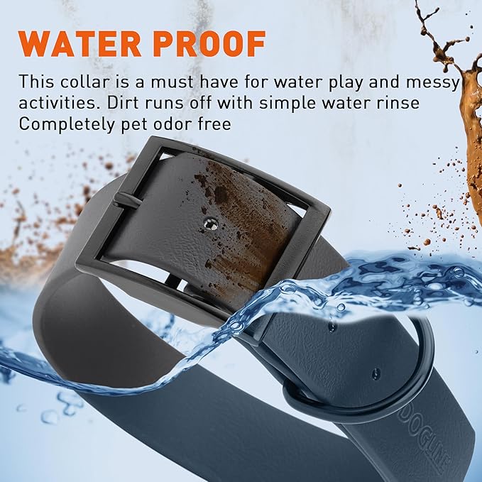 • Free Your Dog to romp in puddles and retrieve from lakes with the Dogline Biothane Waterproof Dog Collar. This water-repellent collar stays dry and odor-free, without shrinking or losing flexibility.