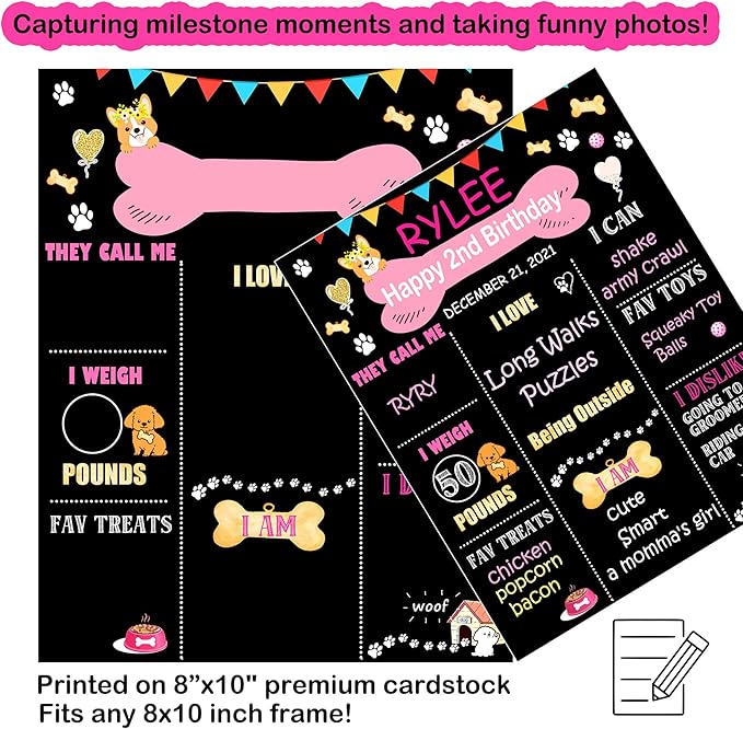 - Personalized Milestone Poster - You can customize your Dogs favourite things and milestones, sharing it with family and friends on the internet and social media. Record your pets' happy time with this meaningful milestone prop.
