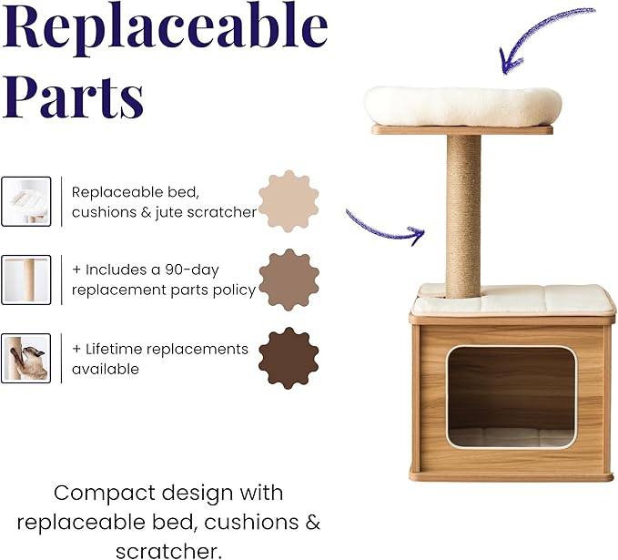 Catry 29.7" Tall 3 Level Laminated Wood Cat Tree with Large Base Condo, 2 Paded Steps, Natural Jute Scratching Post, Sturdy and Easy to Assemble for Small Cat, Brown