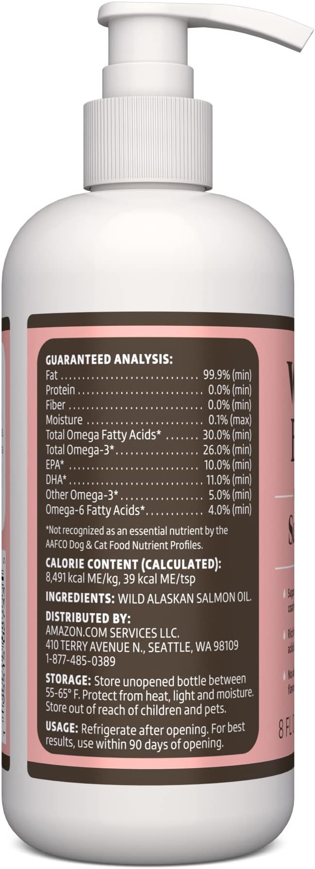Amazon Brand - Wonder Bound Wild Alaskan Salmon Oil - Skin and Coat Support, Omega 3 Supplement for Dog and Cat , 8 fl oz