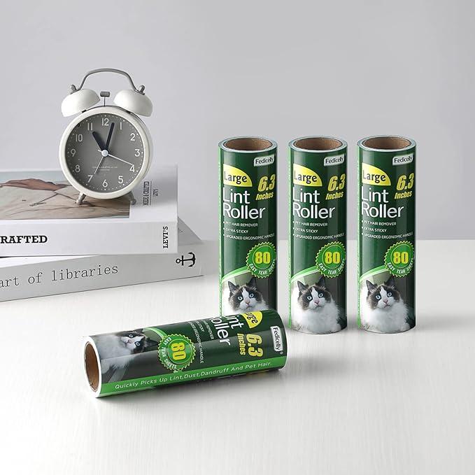 - EXTRA STICKY & EASY PEEL-OFF: Fedicelly large lint rollers for pet hair extra sticky are very easy to use. which used the diagonal cut design for easy & fast tear-off. Extra sticky design and easily removable sheet guarantees lint roller refill quick removal of dog & cat hair, dust, dirt, lint, fur, fuzz.You will save time and energy in removing stubborn hair and other fuzzy bits from your clothes, sofa, furniture, car, carpet etc.