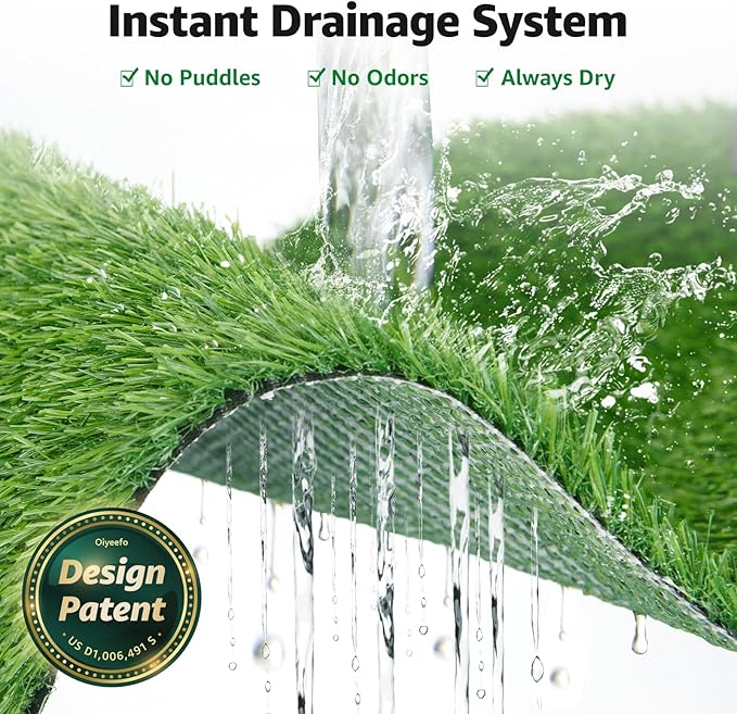 - 5 DISPOSABLE PEE PADS: The artificial grass for dogs potty come with an incredible dog pee pad solution. Advanced absorption technology from Japan,when the drainage holes get the liquids to travel downwards, Oiyeefo puppy pee pad catch the urine and absorb it quickly, so the extreme odor-causing issues can be easily curbed.