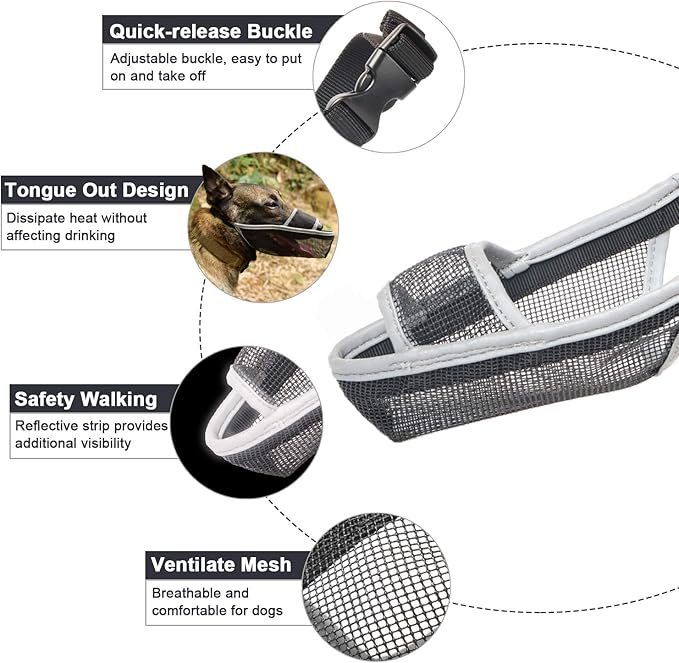 - Comfortable Mesh Muzzle for Dogs: Made from lightweight and breathable material, this soft dog muzzle will help your dog get used to it quickly, and in most cases, they may not even notice it. Its ventilated design allows your dog to pant and yawn freely. Additionally, you can easily store it in a pocket.