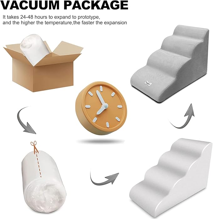 Dog Stairs, Removable and Washable Pet Stairs, 4-Steps Non-Slip Pet Ramp, Dogs Steps for High Bed Sofa, High Resilience Sponge Dog Stairs(Light Brown)