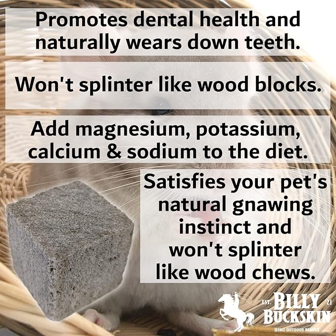 - PERFECT CHEW TOYS FOR ALL SMALL PETS - Billy Buckskin Chinchilla Pumice Chew Blocks are a safe, natural, and effective solution for maintaining healthy teeth and claws in small animals such as rabbits, guinea pigs, hamsters, rats, and chinchillas. These all-natural pumice stone blocks encourage natural chewing behavior, helping to prevent overgrown teeth while promoting dental hygiene and overall wellness. Perfect for use in cages, hutches, or playpens.