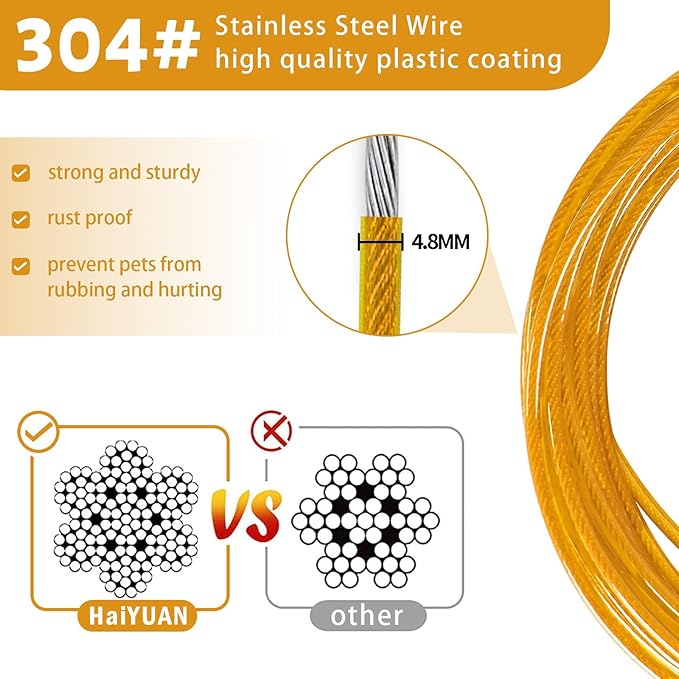- DURABLE MATERIAL:The steel cable is very strong, wrapped in a soft PVC protection tube, durable, rust-proof, high-strength anti-bite, not easy to be torn by the dog, and can be used for a longer period of time.