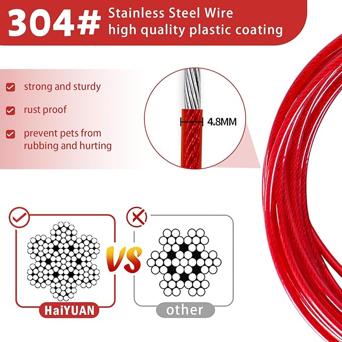 - DURABLE MATERIAL:The steel cable is very strong, wrapped in a soft PVC protection tube, durable, rust-proof, high-strength anti-bite, not easy to be torn by the dog, and can be used for a longer period of time.
