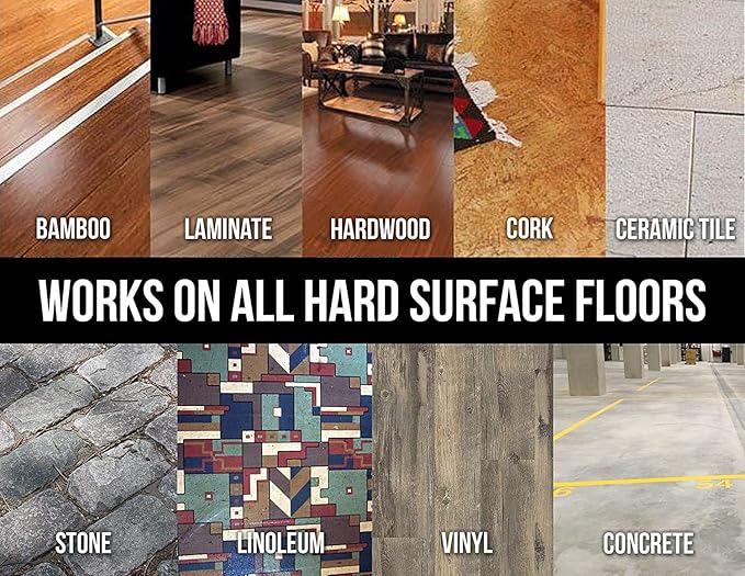 - Best for cleaning hardwood floor, laminate, bamboo, linoleum, ceramic tile, vinyl, concrete, cork, stone and all other hard surface floors