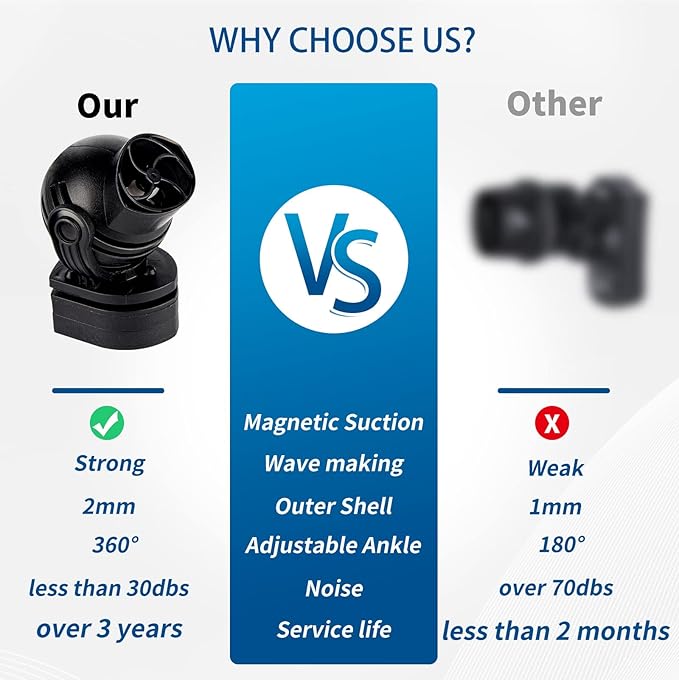 - 360°adjustable direction: The power head for aquarium rotates a full 360 degrees, offering full control of the direction of flow. Eliminate dead spots in your aquarium with the aquarium wavemaker. It doesn't take up much space in the tank with small profile
