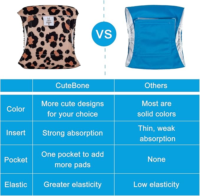 - CuteBone male dog diapers are designed with comfort and durability in mind, they’re perfect for untrained puppies and dog’s incontinent. These soft doggie diapers help your pet keep clean and dry between walks.