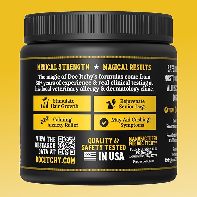 - VETERINARIAN FORMULATED: Doc Itchy uses medical-strength high doses based on veterinary research evidence to make effective treatment & prevention supplements SUPERIOR to plain probiotics & salmon oil