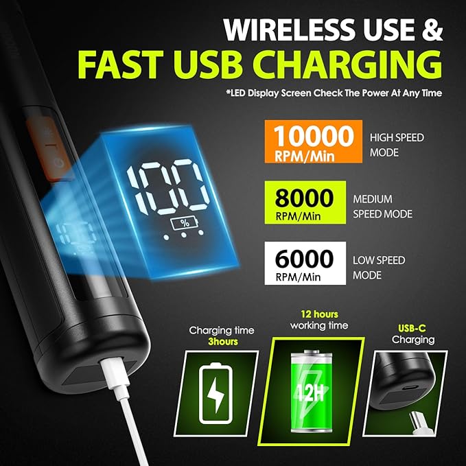 - 【3 Speed Switch & Grinding Ports】: IREDOON dog nail trimmer boasts a 3-speed switch and 3 grinding ports, which allows pet owners to adjust the speed and grinding settings based on their pet's size and nail hardness.