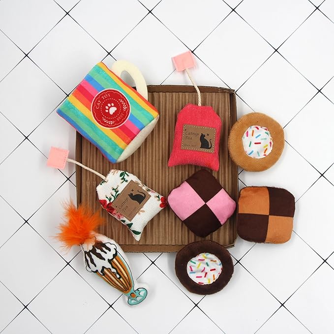 8 Assortments Sweets Value Pack, Natural Interactive Catnip Cat Toys, Toy with Crinkle and Feather, Accessories for Indoor Cat, Kitten Toys