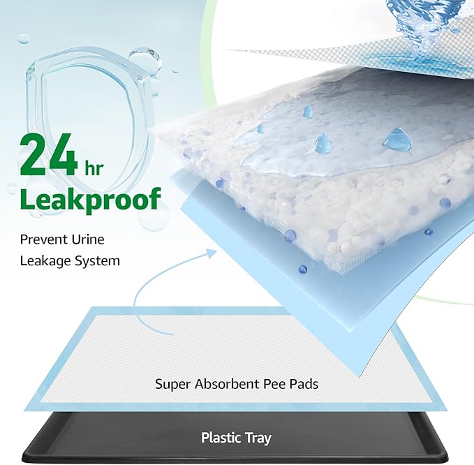 - 5 DISPOSABLE PEE PADS: The dog grass pad with tray system come with an incredible dog pee pad solution. Advanced absorption technology from Japan,when the drainage holes get the liquids to travel downwards, Oiyeefo puppy pee pad catch the urine and absorb it quickly, so the extreme odor-causing issues can be easily curbed.