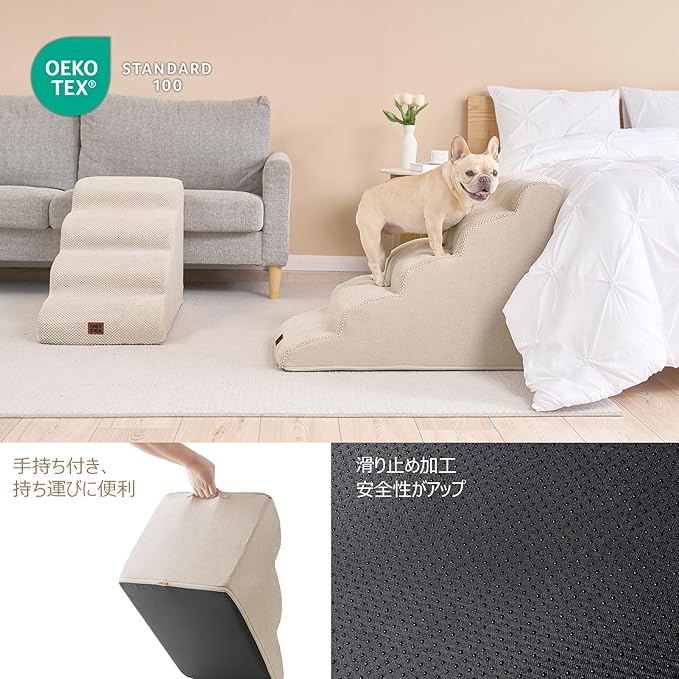 - SPECIFIC AND STEADY DESIGN - 33D density of pure foam make this stair more steady when your pets walk on. The dog bed stairs can provide strong support for pets in the walking process. Low angle slope design can better protect your pet's joints.