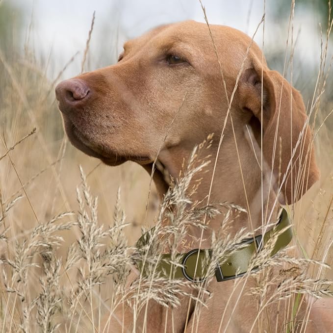 Dogline Biothane Waterproof Dog Collar Strong Coated Nylon Webbing with Black Hardware Odor- Proof for Easy Care Easy to Clean High Performance Fits Small Medium or Large Dogs, Olive Drab Green