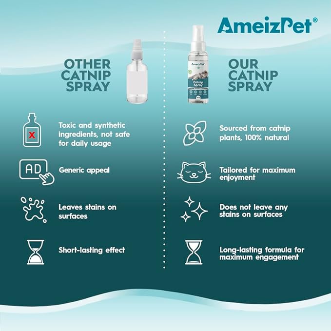 - BOOST YOUR CAT’S EXCITEMENT. Unleash the captivating power of the catnip spray. Specially formulated with the finest catnip essential oils, a quick spritz is all it takes to spark a blast of excitement in your little furry companion. Watch as they engage in playful activities, captivated by the irresistible charm of our cat nips spray.
