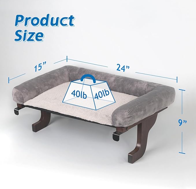 Cat Perch for Window Sill with Bolster - Orthopedic Hammock Design with Premium Hardwood & Robust Metal Frame - Cat Window Seat for Large Cats and Kittens - Dark Stained Wood with Gray Bed