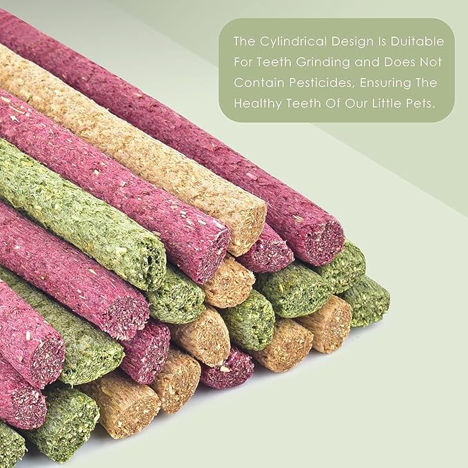 - Small Animals Treat Favor: Timothy hay sticks are ideal for rabbits, bunnies guinea pigs, chinchillas, squirrels, hamsters, rat, gerbils and other small rodent