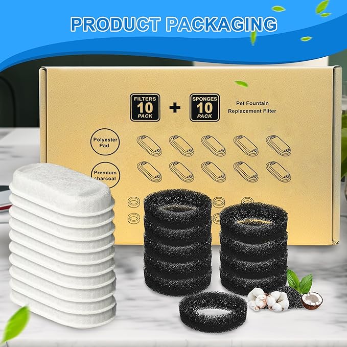 - Value Packr:10 cat fountain replacement filters and 10 pre-filter sponges are included in the package.
