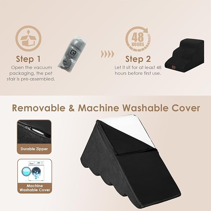 - SPECIFIC AND STEADY DESIGN - 33D density of pure foam make this stair more steady when your pets walk on. The dog bed stairs can provide strong support for pets in the walking process. Low angle slope design can better protect your pet's joints.