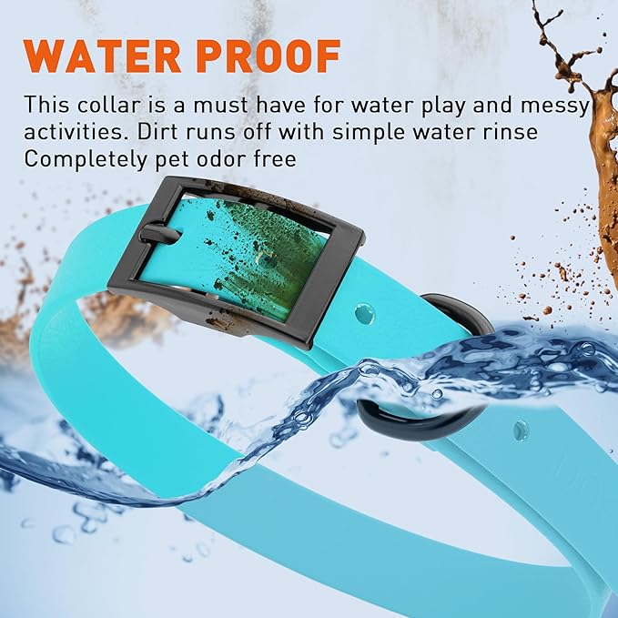 • Free Your Dog to romp in puddles and retrieve from lakes with the Dogline Biothane Waterproof Dog Collar. This water-repellent collar stays dry and odor-free, without shrinking or losing flexibility.