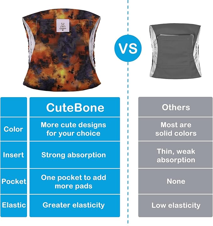 - CuteBone male dog diapers are designed with comfort and durability in mind, they’re perfect for untrained puppies and dog’s incontinent. These soft doggie diapers help your pet keep clean and dry between walks.
