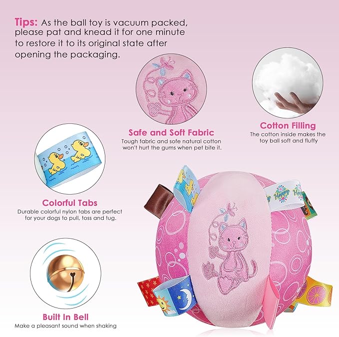 - Interactive Squeaker Toy: Each stuffed dog ball toy is equipped with a built-in bell that produces a pleasant sound when shaked, enticing dogs to engage and play. Each ball has 15 colored tags on it, making it easy for you to interact with your dog.