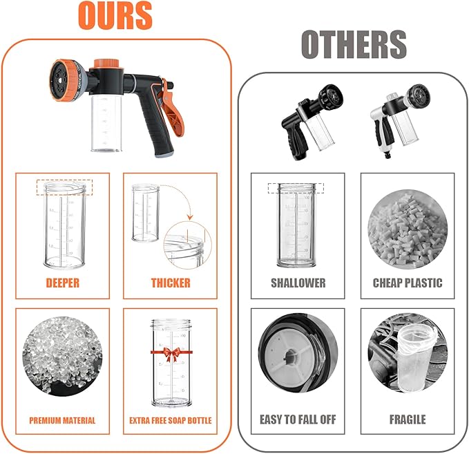 - Upgrade Bult-in Soap Dispenser Bottle, Making Pet Bath Time Super Convenient Now! The perfect combination of dog wash hose attachment and hose nozzle with soap dispenser, the upgrade thicker soap bottle and foam water gun connection where also increased the width of the thread, dog hose attachment for bathtub is easy to install and not easy to fall off.