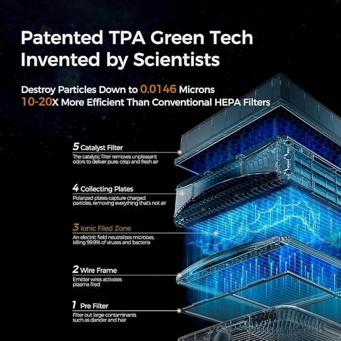 - Patented Washable Filter :The TPA filter is made of durable and recyclable graphene material. Compared with traditional HEPA, X5Pet air purifier TPA Filters are lifetime washable and reusable, saving you over $500 per year on filter replacements.