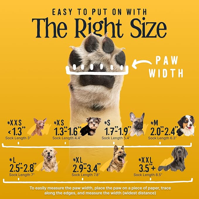 - XXL Size: Larger than 3.5" paw width. Please make sure to measure your pet while they are standing with weight on paw. Includes 4 dog grip socks made of elastic cotton nylon fabric that stretches