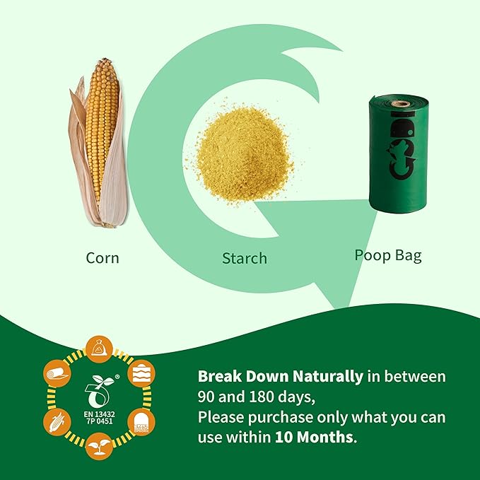 - ๐ฑ ECO-friendly materials: Codirom dog poop bags are made of corn, vegetable oil, and PBAT (a fully compostable polymer). Keep the bags away from heat sources and store in a cool, dry place. The available time of compostable bags is nearly 12 months, so purchase only that will be used within 10 months.