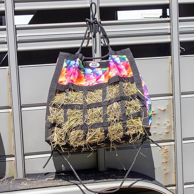 - HOLDS 2-3 FLAKES OF HAY - this 24.5"x9.5"x21.5โ hay bag with 3.5" square openings holds approx. 2-3 flakes of Timothy, Orchard, Alfalfa, or any other type of hay. Our hay bags were designed to minimize frustration and can be stuffed in seconds.