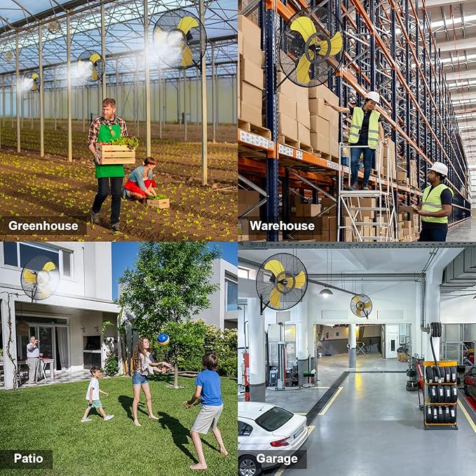 - Heavy Duty Construction: UL safety listed,outdoor-rated for safety. Made from heavy-duty metal construction, our industrial fan equipped with thermally protected motor, 3 aluminum blades, rust-resistant grilles, and 9 ft power cord for long-lasting performance.Includes extra safety rope for added protection
